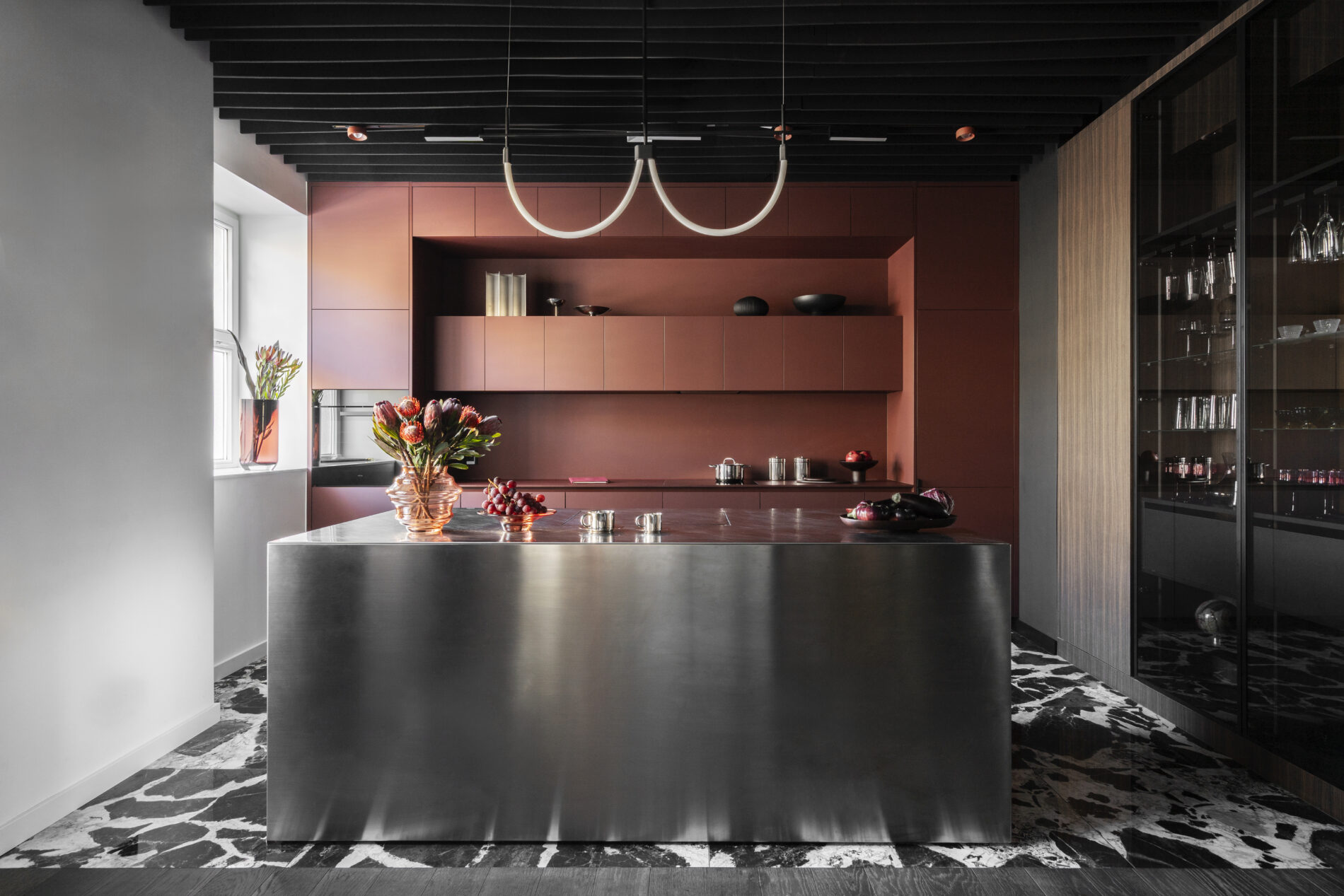 Jest wykwintna! Kuchnia w kolorze bordo z metaliczną masywną wyspą. Elegancka, a jednocześnie nieoczywista. Zabudowa, którą wykonaliśmy jest prosta w swej formie, bardzo pojemna i funkcjonalna – to głęboka barwa nadaje jej szyku! 🍷A wyspa? Praktyczna i absolutnie spektakularna. To przy niej toczy się codzienne życie – poranna kawa, szybkie śniadania, wieczorne rozmowy. Metaliczne wykończenie dodaje wnętrzu nowoczesnej nuty.Jak Ci się podoba takie połączenie? 🩶🍇 __________ #deerwood #kuchniainspiracje #zabudowakuchenna #meblenawymiar #projektkuchni