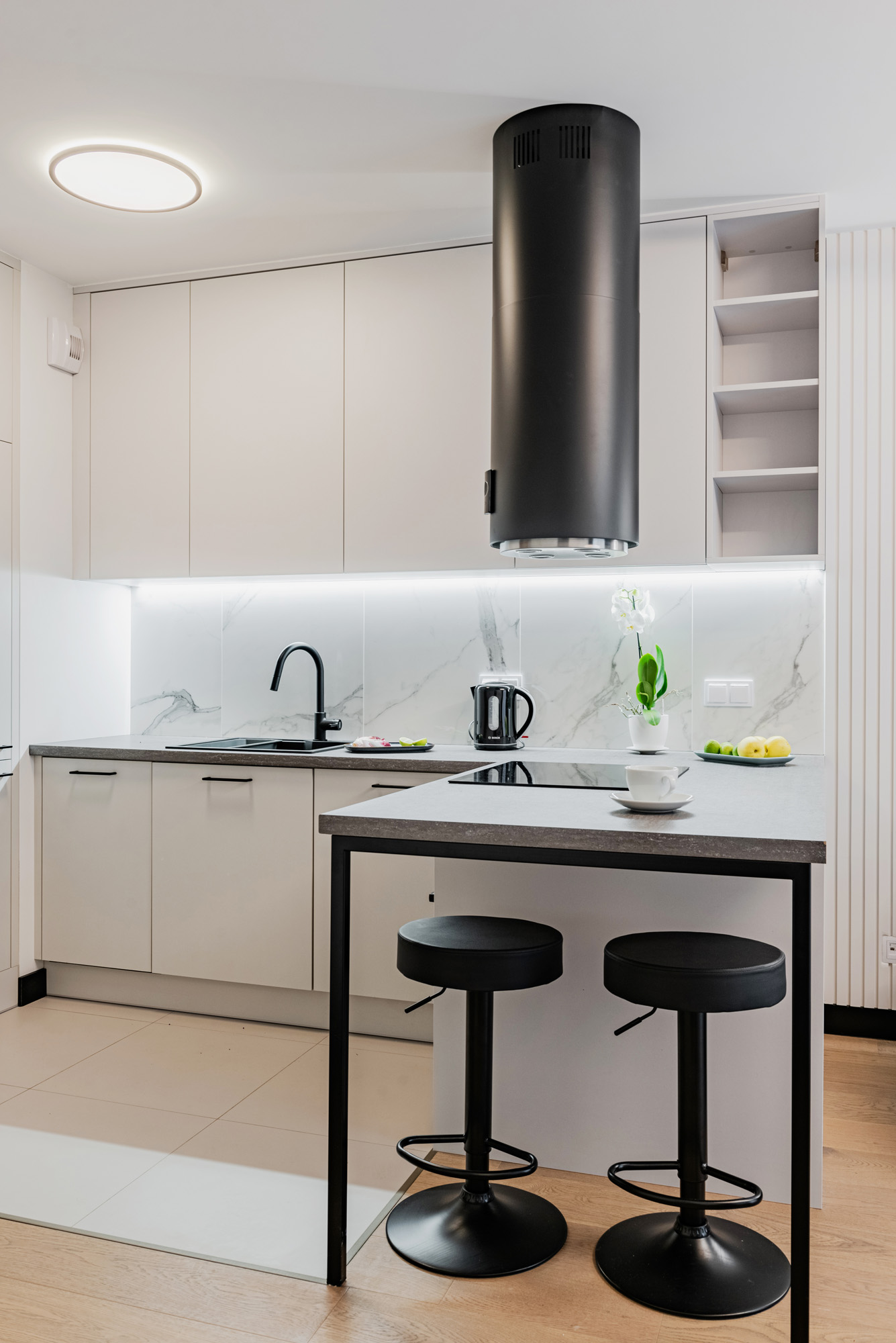 Czerń w meblach wymaga odwagi, ale w zamian daje wnętrzu ponadczasową elegancję 🖤To kolor, który obnaża proporcje, jakość materiałów i każdy detal. Dlatego działa tylko wtedy, gdy jest świadomą decyzją. W zamian daje spokój i elegancję. Meble zostały zaprojektowane tak, aby podkreślały grę kontrastów. Czarne, matowe zabudowy tworzą jednolitą, elegancką ścianę, którą przełamuje wzór marmuru na backsplashu. A intensywnie pomarańczowe krzesła, to prawdziwy twist charakteru 🍊A Ty, z jakim kolorem połączył(a)byś czerń w swoim wnętrzu? 💬 __________ #deerwood #kuchnia #kuchnianawymiar #meblekuchenne #zabudowakuchenna